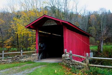 Keywords: west virginia covered bridge fall autumn landmark historic wood fence landscape nature outside outdoors country countryside rural forest trees woods