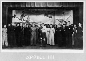 | Keywords: Westerbork, Holland, The play's cast in the camp, Appel.jpg nl Westerbork Holland The play's cast in the camp Appel 1943 1943 https //www coenraadrood org/nl/westerbork/de-schijn-ophouden Rudolf Breslauer other versions Westerbork Holland The play's cast in the camp Appel photo jpg Custom license marker 2016 08 21 1945 Photographs by Rudolf Breslauer Cabaret album Kamp Westerbork | ||||