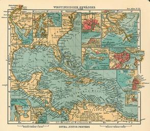 | Keywords: Westindien.jpg Westindische Inseln Karte 1906 Good map of West Indies Mexico Bay Cuba etc from 1906 in German - contains inset maps of Delaware Bay Baltimore Veracruz New Orleans La Guaira Kingston Havana Port-au-Prince Panama Colón PD-old Old maps of the Caribbean Old maps of the Americas Old maps of oceans |