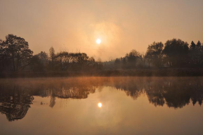 Keywords: wet lake november the fog morning autumn landscape nature sunrise view poland