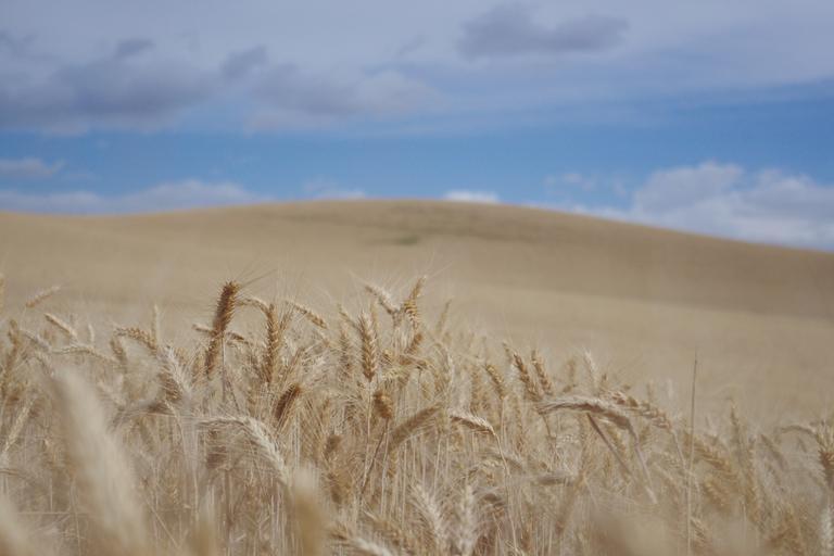 Keywords: wheat field agriculture blue gold harvest rural golden