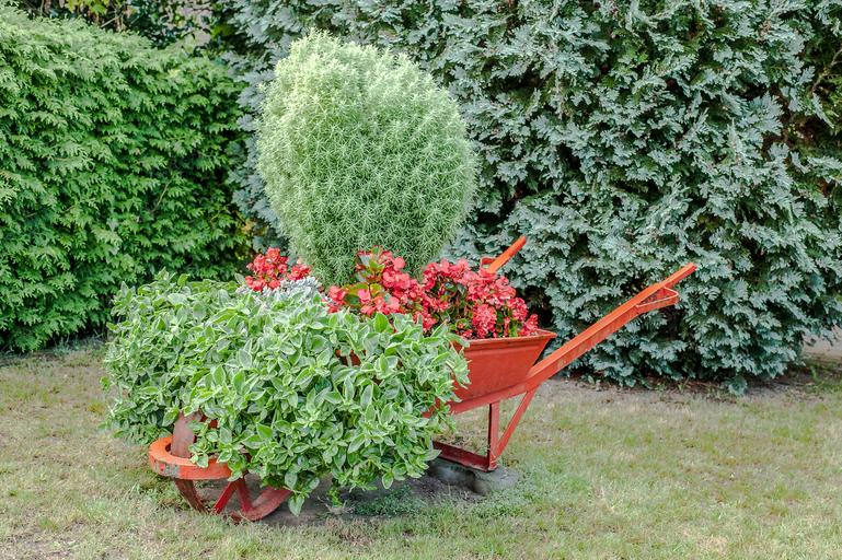 wheelbarrow-red-flowers-conifers-1610470.jpg (4256x2832)