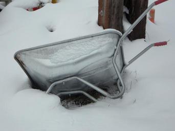Keywords: wheelbarrow snowdrift snow winter cold upset snowy snowed in farm stable work forget