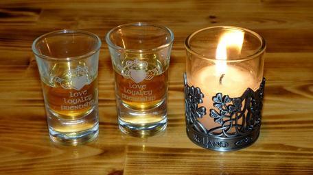 Keywords: whisky štamprla candle candlestick fire ireland heart glass
