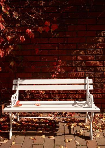 White-bench-near-a-brick-wall.jpg (2094x2950)