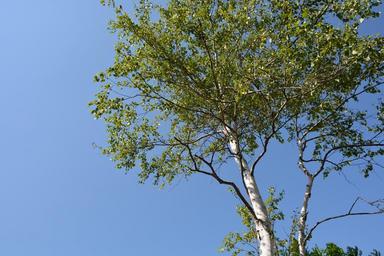 Keywords: white birch wood blue sky