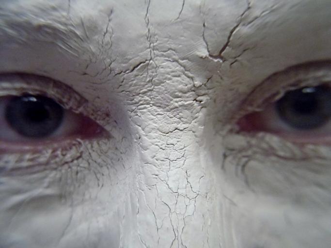 Keywords: white clay mud eyes gaze stare blue eyes face