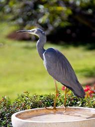 Keywords: white-faced heron heron wild australia perching grey yellow legs birdbath garden