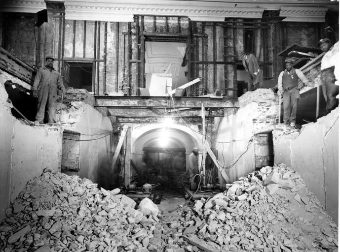 | Keywords: u.s. national archives usnationalarchives harry s. truman library harrystrumanlibrary nara:arcid=6982085 blackandwhite monochrome black and white Original Caption: White House, Lower Corridor, 02/14/1950 Created By: National Archives and Records Administration. Office of Presidential Libraries. Harry S. Truman Library. (04/01/1985 - ) From: Series: Photographs Relating to the Administration, Family, and Personal Life of Harry S. Truman, compiled 1957 - 2004, documenting the period 1849 - 2004 Contact: Harry S. Truman Library (NLHST), 500 West U.S. Highway 24, Independence, MO, 64050-1798. PHONE: 816-268-8272; FAX: 816-268-8295; EMAIL:truman.reference@nara.gov. Production Dates: 02/14/1950 Scope and Content Note: Photograph taken from the east entrance of the lower corridor of the White House, looking west with the East Room above. The workmen are demolishing the walls of the lower corridor. Persistent URL: arcweb.archives.gov/arc/action/ExternalIdSearch?id=6982085 Truman Library URL: www.trumanlibrary.org/photographs/view.php?id=1935 Access Restrictions: Unrestricted Use Restrictions: Unrestricted Original Caption: White House, Lower Corridor, 02/14/1950 Created By: National Archives and Records Administration. Office of Presidential Libraries. Harry S. Truman Library. (04/01/1985 - ) From: Series: Photographs Relating to the Administration, Family, and Personal Life of Harry S. Truman, compiled 1957 - 2004, documenting the period 1849 - 2004 Contact: Harry S. Truman Library (NLHST), 500 West U.S. Highway 24, Independence, MO, 64050-1798. PHONE: 816-268-8272; FAX: 816-268-8295; EMAIL:truman.reference@nara.gov. Production Dates: 02/14/1950 Scope and Content Note: Photograph taken from the east entrance of the lower corridor of the White House, looking west with the East Room above. The workmen are demolishing the walls of the lower corridor. Persistent URL: arcweb.archives.gov/arc/action/ExternalIdSearch?id=6982085 Truman Library URL: www.trumanlibrary.org/photographs/view.php?id=1935 Access Restrictions: Unrestricted Use Restrictions: Unrestricted |