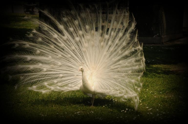 Keywords: white peacock peacock tail feathers white zoo bird elegance feathers animal