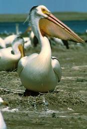 Keywords: white pelican bird wildlife nature beak land water wild sea standing close