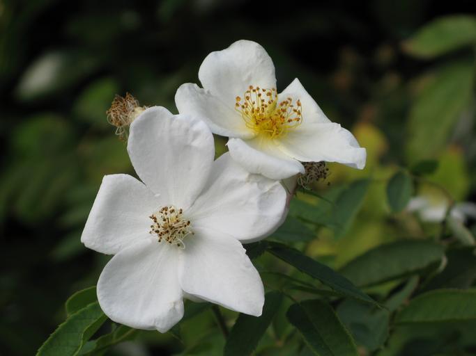 Keywords: White Single Rose.jpg en A closeup of two white single-flowered roses Own ChickenFreak Unidentified Rosa species