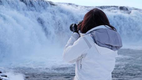 Keywords: white snow winter cold beautiful amazing force raging waterfall faxafoss waterfall reykjavik iceland scandinavia europe