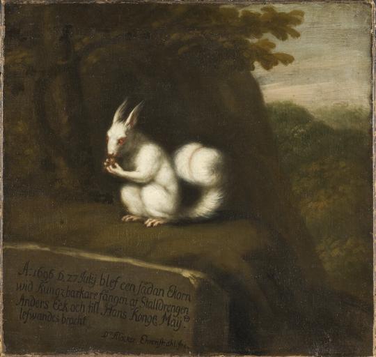 Keywords: White Squirrel in a Landscape (David Klöcker Ehrenstrahl) - Nationalmuseum - 22284.tif Artwork Creator David Klöcker Ehrenstrahl White Squirrel in a Landscape On July 27 1696 a live albino squirrel was brought to Charles XI The king was amused by the unusual animal and commissioned his court painter to paint it Ehrenstrahl ™s animal paintings often reflect the fascination of his times with the exotic or unusual ”parrots and polar bears are interspersed with giant moose or malformed dogs Thus not only royalty was eternalized by Ehrenstrahl ™s brush And so we now have this curious squirrel with its white coat and red eyes eternally nibbling on a nut Den 27 juli 1696 blev denna albinoekorre levande förd till Karl XI Kungen roades och gav sin hovmÃ¥lare i uppdrag att avbilda det ovanliga djuret Ehrenstrahls djurmÃ¥lningar speglar ofta tidens fascination för det exotiska eller avvikande “ papegojor och isbjörnar varvas med gigantiska älgar eller missbildade hundar Det var alltsÃ¥ inte bara kungligheter som förevigades av Ehrenstrahls pensel Här sitter nu den kuriösa ekorren med sin vita päls och röda ögon och knaprar pÃ¥ en nöt i evigheten header On July 27 1696 a live albino squirrel was brought to Charles XI The king was amused by the unusual animal and commissioned his court painter to paint it Ehrenstrahl ™s animal paintings often reflect the fascination of his times with the exotic or unusual ”parrots and polar bears are interspersed with giant moose or malformed dogs Thus not only royalty was eternalized by Ehrenstrahl ™s brush And so we now have this curious squirrel with its white coat and red eyes eternally nibbling on a nut Den 27 juli 1696 blev denna albinoekorre levande förd till Karl XI Kungen roades och gav sin hovmÃ¥lare i uppdrag att avbilda det ovanliga djuret Ehrenstrahls djurmÃ¥lningar speglar ofta tidens fascination för det exotiska eller avvikande “ papegojor och isbjörnar varvas med gigantiska älgar eller missbildade hundar Det var alltsÃ¥ inte bara kungligheter som förevigades av Ehrenstrahls pensel Här sitter nu den kuriösa ekorren med sin vita päls och röda ögon och knaprar pÃ¥ en nöt i evigheten 1696 Oil on canvas Olja pÃ¥ duk Glasad Size cm 64 61 5 Framed Size cm 76 73 6 Institution Nationalmuseum Stockholm Signerad A 1696 D 27 Julÿ blef een sÃ¥dan Ekorn wid Kungzbarkare fÃ¥ngen af Stalldrengen Anders Eek och till forts i kommentarsfältet accession number 22284 NM 5234 place of creation Erik Cornelius / Nationalmuseum Nationalmuseum Stockholm cooperation project Licensed-PD-Art PD-old-auto PD-Nationalmuseum_Stockholm 1698 Media contributed by Nationalmuseum Stockholm 2016-10 Paintings in the Nationalmuseum Stockholm David Klöcker Ehrenstrahl |