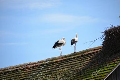 Keywords: white storks storks birds animals rattle stork nature roof