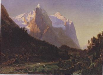 | Keywords: Whittredge - Das Wetterhorn.jpeg Das Wetterhorn The Wetterhorn Oil on canvas 100 3 × 137 2 cm Institution Newark Museum repro from art book 1858 creator Worthington Whittredge PD-old-100 Other versions Worthington Whittredge Newark Museum Historical images of Wetterhorn Paintings of the Bernese Alps 1850s landscape paintings 19th-century mountain paintings |