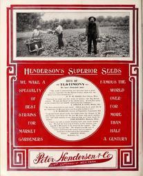 | Keywords: Wholesale price list of requisites for florists and market gardeners (16589192280).jpg H ENDERSON'S gUPDRIOR S EEDS <br> –ˇ <br> 1 <br> bits or <br> TESTIMONY <br> We have thousands more <br> CTI 1JAI ir TUC <br> ' The seeds I ordered from you last year were a great <br> success especially the Big Boston Lettuce which was the <br> finest ever seen around here <br> H W M DRAKE Port Gibson Miss <br> Enclosed we send you two views of Lettuce ” the Big Boston <br> variety We had the finest on the market here It took first prize <br> at the County Fair last month ” had heads like Cabbages <br> A ZIMLICK SONS Mobile Ala <br> We have great faith in your seeds Others may be as good but in <br> my experience of 25 years have not been able to find it out <br> J H McMILLEN Grower of Vegetables Logansport Ind <br> I can buy lower priced seeds but deem yours far cheaper in the <br> end having used them for the last 10 years with great satisfac- <br> tion ” and shall continue to use them as long as I raise truck for <br> mar ket JOHN KOLBERT Mankato Minn <br> I know you will appreciate knowing how your seeds turned <br> out We had the best crop of Celery in this district run- <br> ning 20 to 28 pounds to the dozen by the carload The <br> Lettuce was also fine We shipped over 60 cars of <br> Celery and Lettuce this season and our superior <br> stock gave us the lead in the i hiladelphia <br> market AARON R NILES <br> Wellsboro Pa <br> WE MAKE A <br> or <br> BEST <br> STRAINS <br> FOR <br> MARKET <br> GARDENERS <br> WOREO <br> OVER <br> FOR <br> MORE <br> THAN <br> HAEE <br> A GENTIRY 45174070 160879 84546 Text http //www biodiversitylibrary org/page/45174070 1912 Henderson Peter Co ; Stumpp Walter Co New York N Y Biodiversity Heritage Library Wholesale price list of requisites for florists and market gardeners / 1897-1913 Garden Stories Catalogs Henderson Peter Co New York New York State Nurseries Horticulture Nursery stock Seed industry and trade Seeds Stumpp Walter Co New York N Y Mertz Library The New York Botanical Garden bhl page 45174070 dc identifier http //biodiversitylibrary org/page/45174070 bhlGardenStories Flowers Bulbs Vegetables BHLinbloom henderson peter co new york new york state nurseries horticulture stumpp walter co new york n y mertz library the new york botanical garden bhlgardenstories bhlinbloom Information field Flickr posted date ISOdate 2015-03-10 CC-BY-2 0 BioDivLibrary https //flickr com/photos/61021753 N02/16589192280 2015-08-24 21 57 45 cc-by-2 0 PD-old-70-1923 Wholesale price list of requisites for florists and market gardeners 1912 Photos uploaded from Flickr by Fæ using a script |