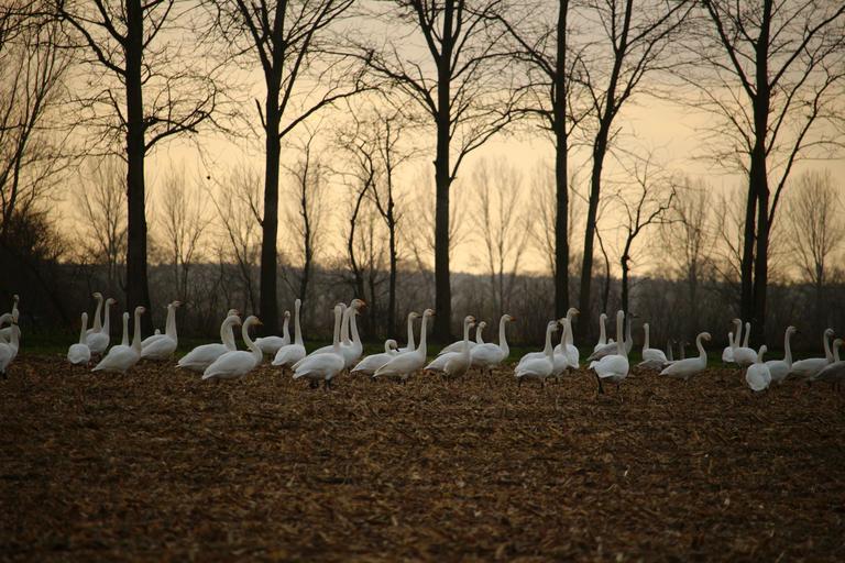 Keywords: whooper swan swan migratory bird swans field arable landscape nature agriculture