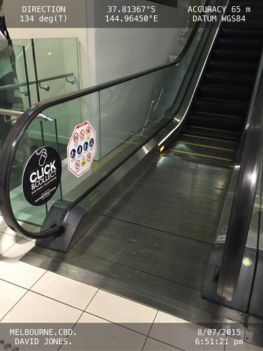 Imagine you are walking towards the escalator. Would you be more interested in an informational purpose signage or be more excited by “Greater Discounts Upstairs” signage?