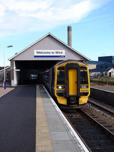 Keywords: 58 26N 3 06W Wick railway station is a railway station serving the town of Wick, in the Highland council area in the north of Scotland. 28 July 1874 Opened. Attribution: OLU