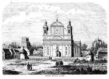 | Keywords: Widok miasta Ołyki.jpg en View of Olyka Left - Town Hall the center - Catholic collegiate church of Holy Trinity right - Holy Trinity Church destroyed in 1871 new built in 1886 pl Widok miasta Ołyki uk Вигляд міста Олики Ліво уч - атуша по цент у - католицький Колегіальний костел Святої Т ійці п аво уч - це ква Святої Т ійці знищена у 1871 оці нова збудована у 1886 http //www bilp uw edu pl/ti/1859/foto/n586 htm Ołyka//Tygodnik Ilustrowany 1860 62 S 586 19th century published in 1860 author PD-Art Olyka Kivertsivskyi rajon Church of the Holy Trinity in Olyka |