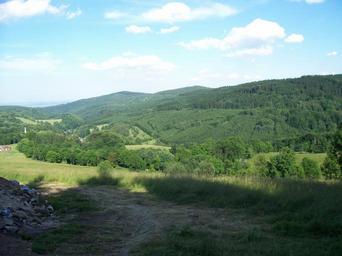 Keywords: Widok z Przelęczy Lądeckiej na Travne.jpg pl Widok z Przełęczy Lądeckiej na stronę czeską W dole wieś Travna own Miezian 2008 Góry Złote Travná Javorník Przełęcz Lądecka