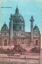 | Keywords: Wien - Karlskirche.jpg en Postcard undated ca 1914 Title Vienna - Karlskirche de Postkarte undatiert ca 1914 Titel Wien - Karlskirche private collection of Wolfgang Sauber Xenophon anonymous 2008-10-25 PD-1923 anonymous-EU Karlskirche Vienna - Historical images Postcards of Austria-Hungary 1914 postcards Vienna in the 1910s |