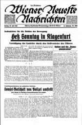 | Keywords: Wiener Neueste Nachrichten - 19380722.jpg Frontpage of daily newspaper Wiener Neueste Nachrichten from 1938-07-22 http //anno onb ac at/ ANNO - AustriaN Newspaper Online - which provides facsimiles of Austrian newspapers 70 years after publication 1938-07-22 Wiener Neueste Nachrichten PD-old Newspapers of Austria |