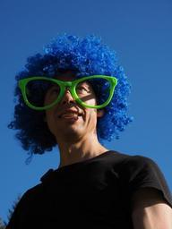 Keywords: wig blue hair panel fun carnival dress atze schröder parody veräppelung man human person face atze