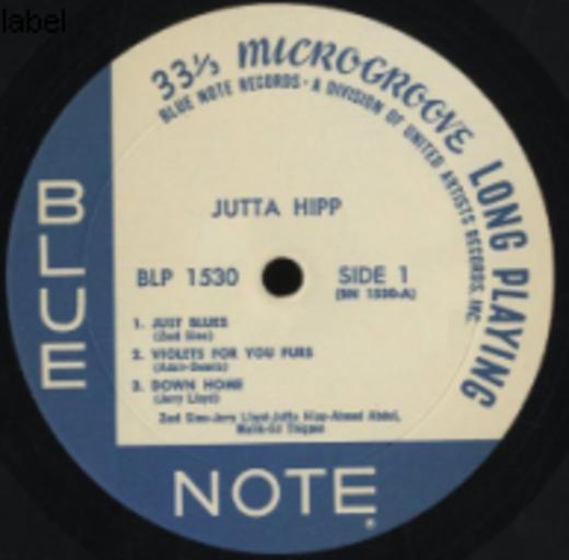 Keywords: Wiki Jutta Hipp RecLabel.png en record-label of vinyl-record from Jutta Hipp of Blue Note Records de Schallplatten-Etikett einer Vinyl-Schallplatte von Jutta Hipp von der Firma Blue Note own Teletick 1970-04-09 Record labels