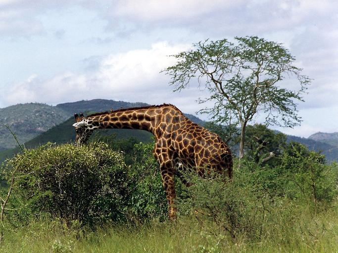 Keywords: wild animal mammal giraffe reticulated giraffe grass steppe savannah grasses africa kenya equator bushland