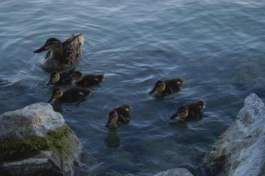 Keywords: wild ducks family duckling lake lakeside waterfront lake balaton animal bird water bird