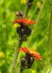 Keywords: wild flower plant meadow orange yellow insect flying flower insect wildlife close-up nature garden orange hawkweed red king devil