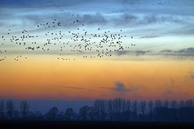 Keywords: wild geese evening sky nature field geese migratory birds landscape arable sky sunset