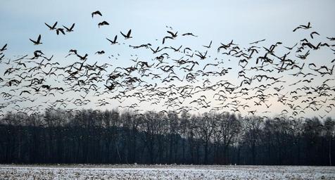 Keywords: wild geese flock of birds winter snow migratory birds swarm geese birds wild goose bird water bird migratory bird
