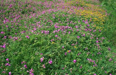 Keywords: wild growing flowers flowers wild pink yellow grass green