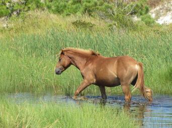 Keywords: animal themes attentive beasts horse green grass Assateague Island National Seashore wildlife green grass