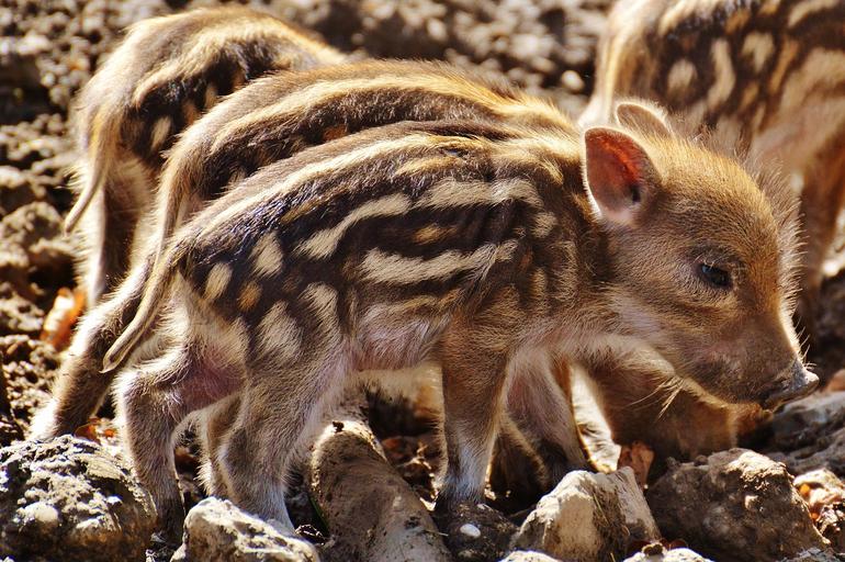 Keywords: wild pigs wildpark poing young animals piglet pig small funny cute sweet small pigs baby