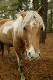 Keywords: wild pony close head portrait pony chincoteague island virginia usa feral nature small wildlife wooded