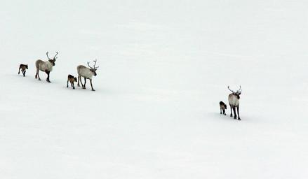 Keywords: wild reindeer the calves newborn the nature of the norway winter animals
