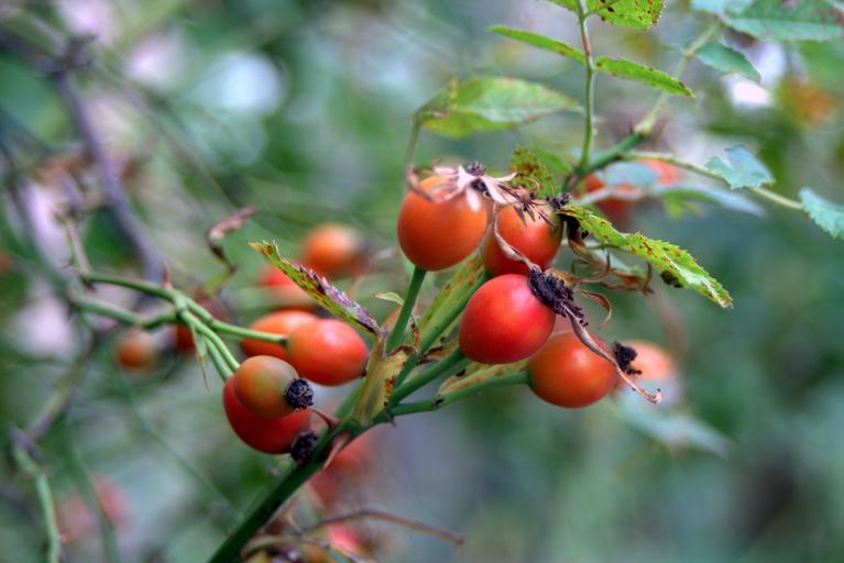 Keywords: wild rose bush fruit red orange fruiting rose plant