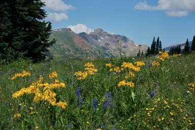 Keywords: wildflower mountain landscape yellow nature summer wilderness sky colorado