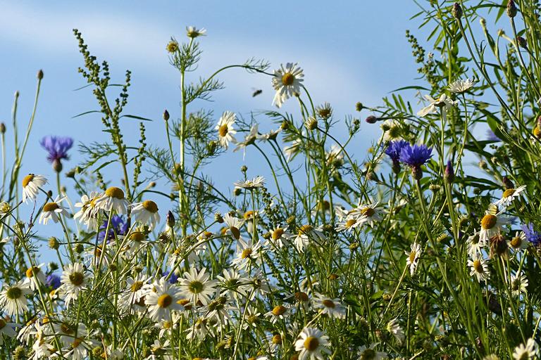 Keywords: wildflowers wild flowers cornflowers chamomile summer blue sky