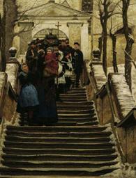 | Keywords: Wilhelm Bernatzik Winter 1888.jpg title Winter Winter Hiver oil on canvas 96 x 78 cm Institution Belvedere Inv -Nr 797 Das Bild zeigt eine Ansicht der Kirchenstiege von Mistelbach dem Geburtsort des Künstlers <ref> Kulturnachrichten aus dem Weinviertel Heft 2 2015</ref> Österreichische Galerie Belvedere http //digital belvedere at/emuseum/media/view/Objects/6563/2166 t state flow c181dea5-24f6-4970-8200-fff84f53271c 1888 Wilhelm Bernatzik Wilhelm Bernatzik Österreichische Galerie Belvedere 1888 paintings Winter in art Stairs in art Churchgoing in art Pfarrstiege Mistelbach PD-old |