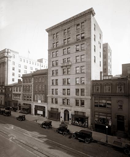 Keywords: Wilkins Building - Washington, D.C..jpg en The Wilking Building located at 1512-14 H Street NW in downtown Washington D C The nine-story building designed by local architect Jules Henri de Sibour was constructed in 1912 by the Wells Bros of New York The owners were John F and Robert C Wilkins In 1932 the U S Federal government purchased the building and used it as office space for the Veteran Bureau The Wilkins Building was demolished in the 1960s and the site is now occupied by the Howard T Markey National Courts Building On the far left is the Union Trust Building now a branch office of the American Bar Association It was designed by local architect Waddy B Wood and is listed on the National Register of Historic Places Businesses seen in the picture include W J Sloane Southern Railway ticket office W M Frank Thyson Real Estate Consumers Company M Tudor Morsell Real Estate W F Roberts Company A C Wiley Real Estate Nejib Hekimian Inc F B Keech Co and Marie Louise Hat Shop The only buildings seen in this picture that still exist are the Union Trust Building and the rear portion of the Dolly Madison House 1516 H Street on the far right; now a contributing property to the Lafayette Square Historic District npcc 30670 National Photo Company 1920 PD-USGov Bar association buildings American Bar Association 1920 in Washington D C Streets in Washington D C Historic district contributing properties in Washington D C National Register of Historic Places in Washington D C Demolished buildings in Washington D C Southern Railway US Jules Henri de Sibour Buildings of the United States government in Washington D C Dolley Madison Built in Washington D C in 1912 H Street Washington D C |