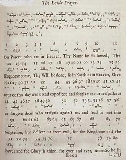 Keywords: Wilkins Essay Lord's Prayer.jpg en Sample of the constructed language real character of w John Wilkins translation of the w Lord's Prayer from w An Essay towards a Real Character and a Philosophical Language 1668 http //www mhs ox ac uk/gatt/catalog php num 43 Printer John Martin 1668 PD-old-100 1668 books John Wilkins Constructed languages Lord's Prayer Book pages Unusual typography |