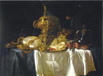 | Keywords: Willem van Aelst - Still life with fruits and dishes.jpg Artwork Creator Willem van Aelst Still life with fruits and dishes Stilleben mit Obst und Geschirr 1653 oil on canvas cm 77 102 Palazzo Pitti Galleria Palatina Book scan 300 dpi Christian Stukenbrock und Barbara Töpper 1000 Meisterwerke der Europäischen Malerei von 1300 bis 1850 Hagen Verlag Könemann 2005 ISBN 3-8331-1310-3 p 11 Other versions <gallery> image Still life with fruits and dishes by Willem van Aelst jpg </gallery> PD-old-100 Paintings by Willem van Aelst 17th-century still life paintings in Italy 1653 paintings in Italy 1650s still life paintings Galleria Palatina Florence 17th-century still life paintings of fruits Oil paintings of nature Still life paintings of nautilus cups Cuisine of the Netherlands in art Scans by Mattes Work by Mattes 2008 Scanned with HP Photosmart C5200 |