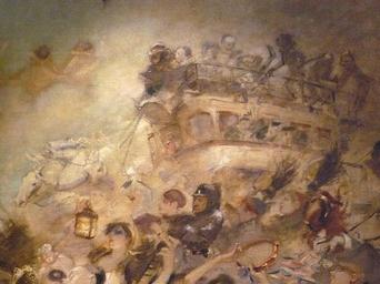 Keywords: WILLETTE Adolphe,1884 - Parce Domine - Detail 092.jpg - Detail 092 - Un attelage à imperiale au milieu d'une foule en fête - A double-deck carriage in the middle of a festive crowd - Montmartre - 1884 Oil on canvas Montmartre Own other versions PD-old-auto 1926 Details of Parce Domine by Adolphe Willette