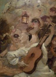 | Keywords: WILLETTE Adolphe,1884 - Parce Domine - Detail 121.jpg fr - Detail 121 - Pierrot chantant et jouant de la guitare au milieu de la foule en fête - Pierrot singing and playing guitare for a masked woman with a champagne glass in the middle of the festive crowd - Montmartre - 1884 own L'artauprésent other versions PD-old-auto 1926 Details of Parce Domine by Adolphe Willette | ||||