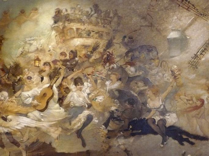 Keywords: WILLETTE Adolphe,1884 - Parce Domine - Detail 040.jpg - Detail 040 - Une foule en fête et un attelage à impériale - a festive crowd and a double-deck carriage - Montmartre - 1884 Oil on canvas Montmartre Own other versions PD-old-auto 1926 Details of Parce Domine by Adolphe Willette |